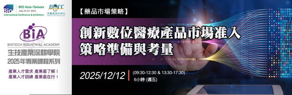 12月【藥品市場策略】專題「創新數位醫療產品市場准入策略準備與考量」 more